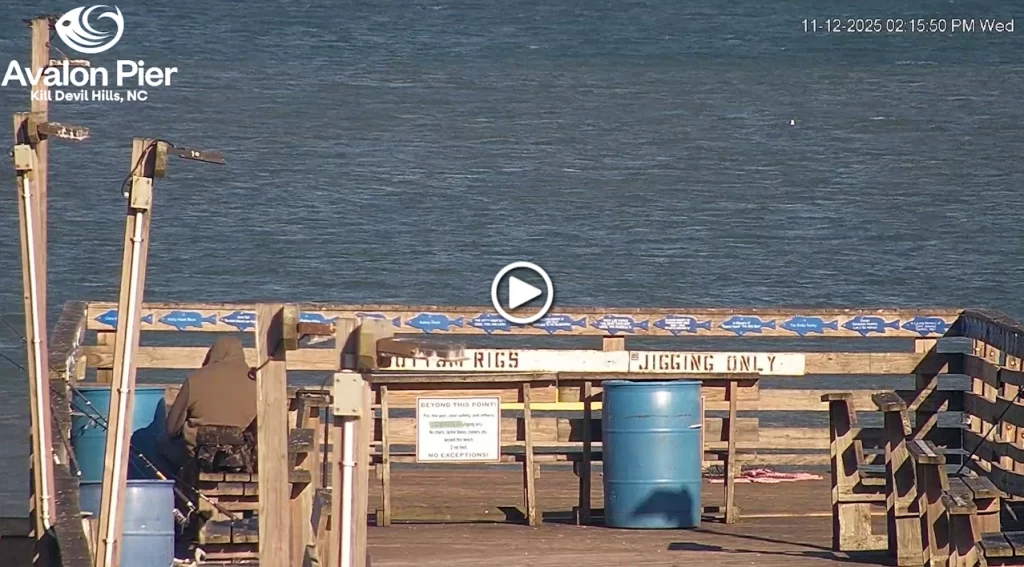 Enjoy the live streaming webcam at the Avalon Pier in Kill Devil Hills, North Carolina. Also, it is a popular spot for visitors and locals alike. This wooden pier stretches about 1,000 feet into the ocean. It offers beautiful views of the Atlantic Ocean and the surrounding beach. People come here to fish, walk, and take pictures. The pier is not just a place to enjoy the water; it’s a central point for fun activities. Many enjoy sitting on benches while watching the waves crash against the shore. The sound of the waves can be very calming and makes this location special for those looking to relax and unwind.